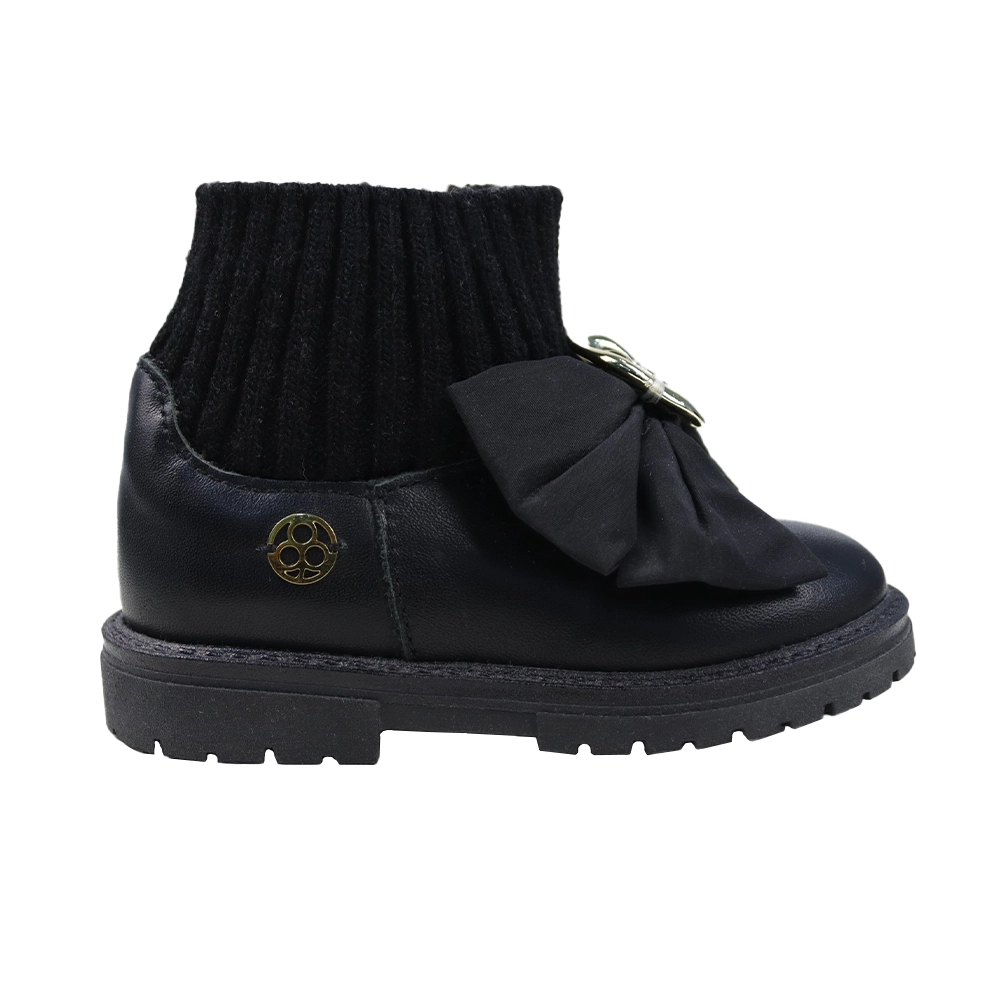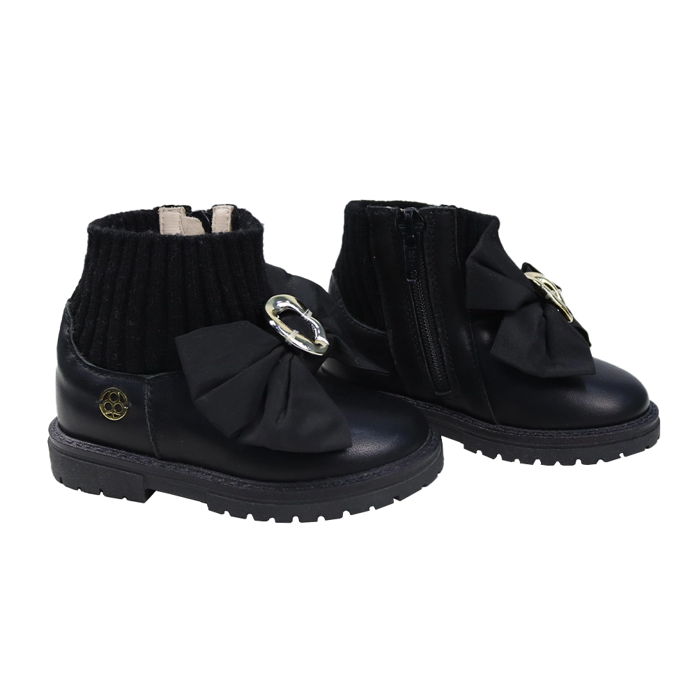 أحذية كاحل جلدية سوداء للبنات الصغيرات مع فيونكة