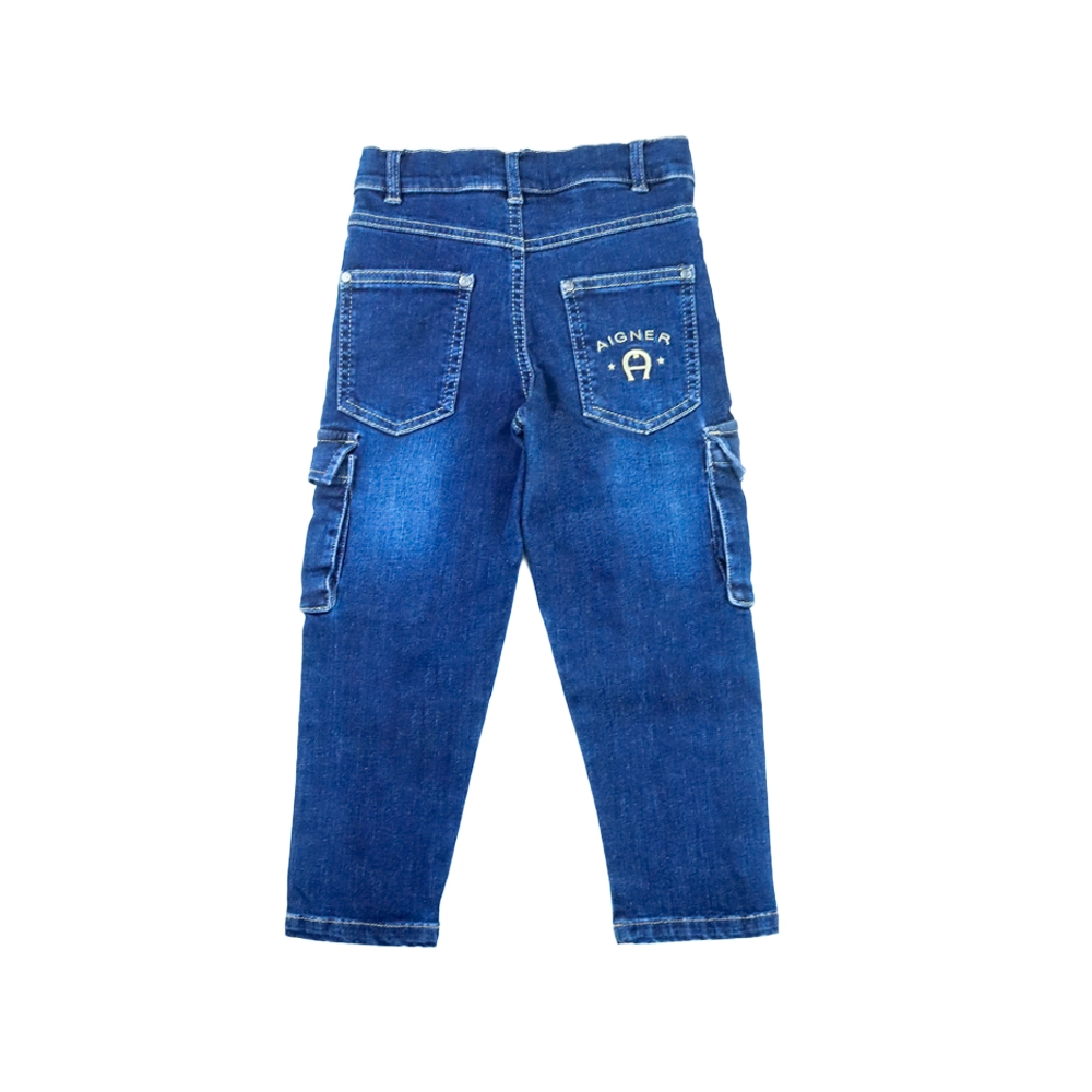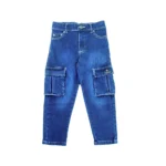 بنطلون جينز كارجو للأولاد بلون أزرق بحري مع طباعة الشعار