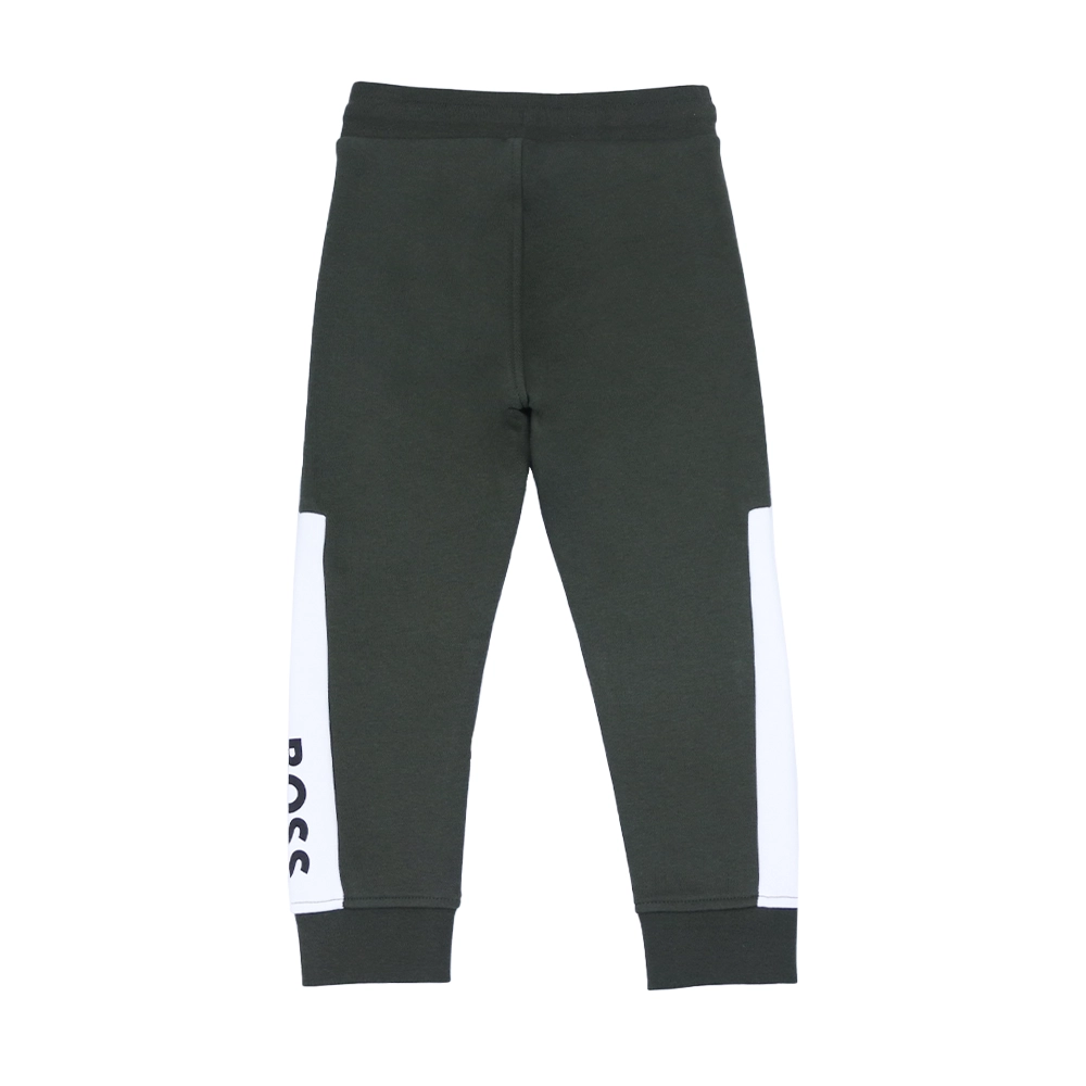 بنطلون رياضي للأطفال باللون الأخضر الداكن مع شعار