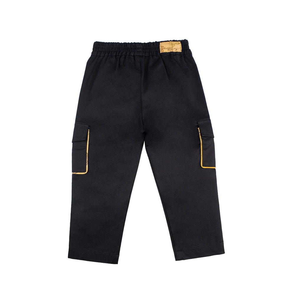 بنطلون قطني للأولاد باللون الأسود مع حواف بيج