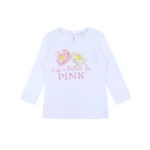 تي شيرت بأكمام طويلة وردي بطبعة زهور للبنات