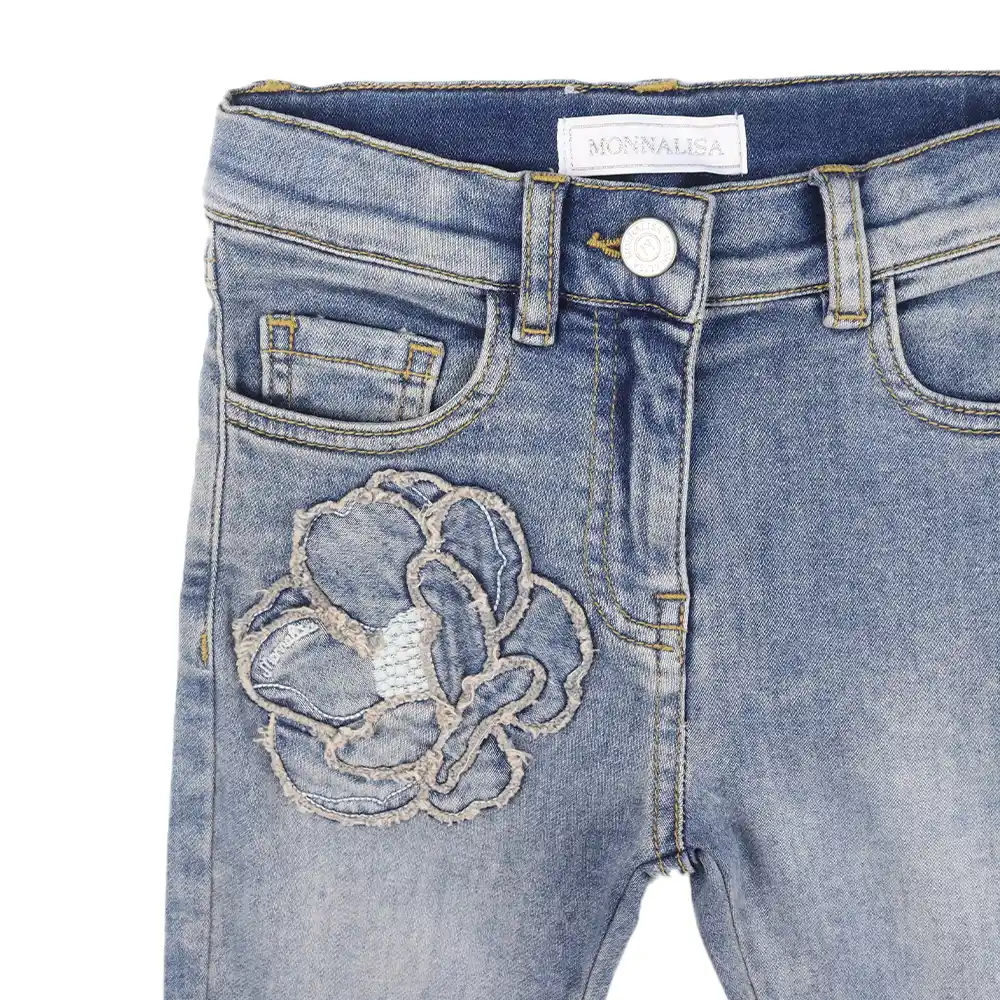 جينز دنيم أزرق للفتيات مع تطريز زهور
