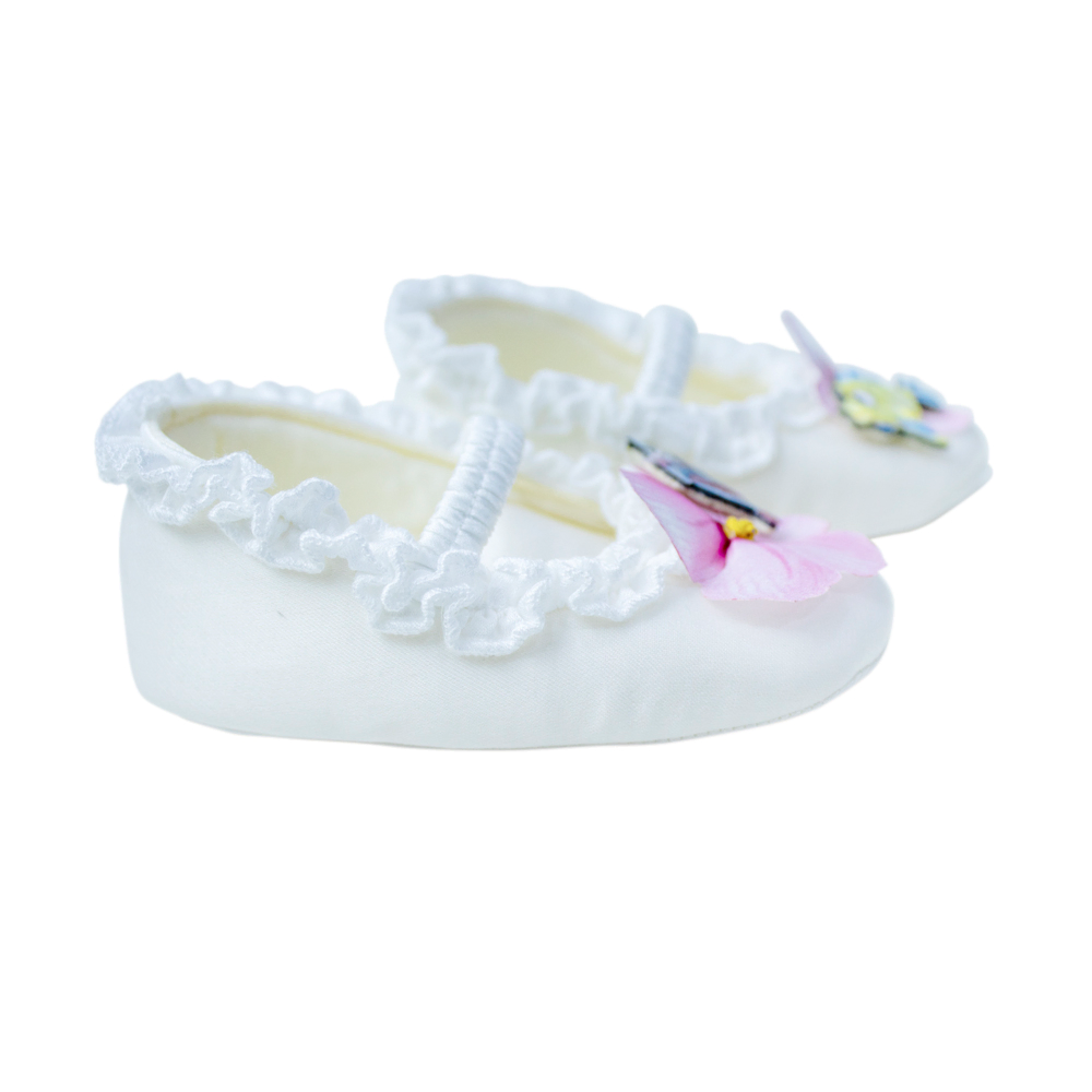 حذاء بنعل ناعم بزهور كريمية للأطفال