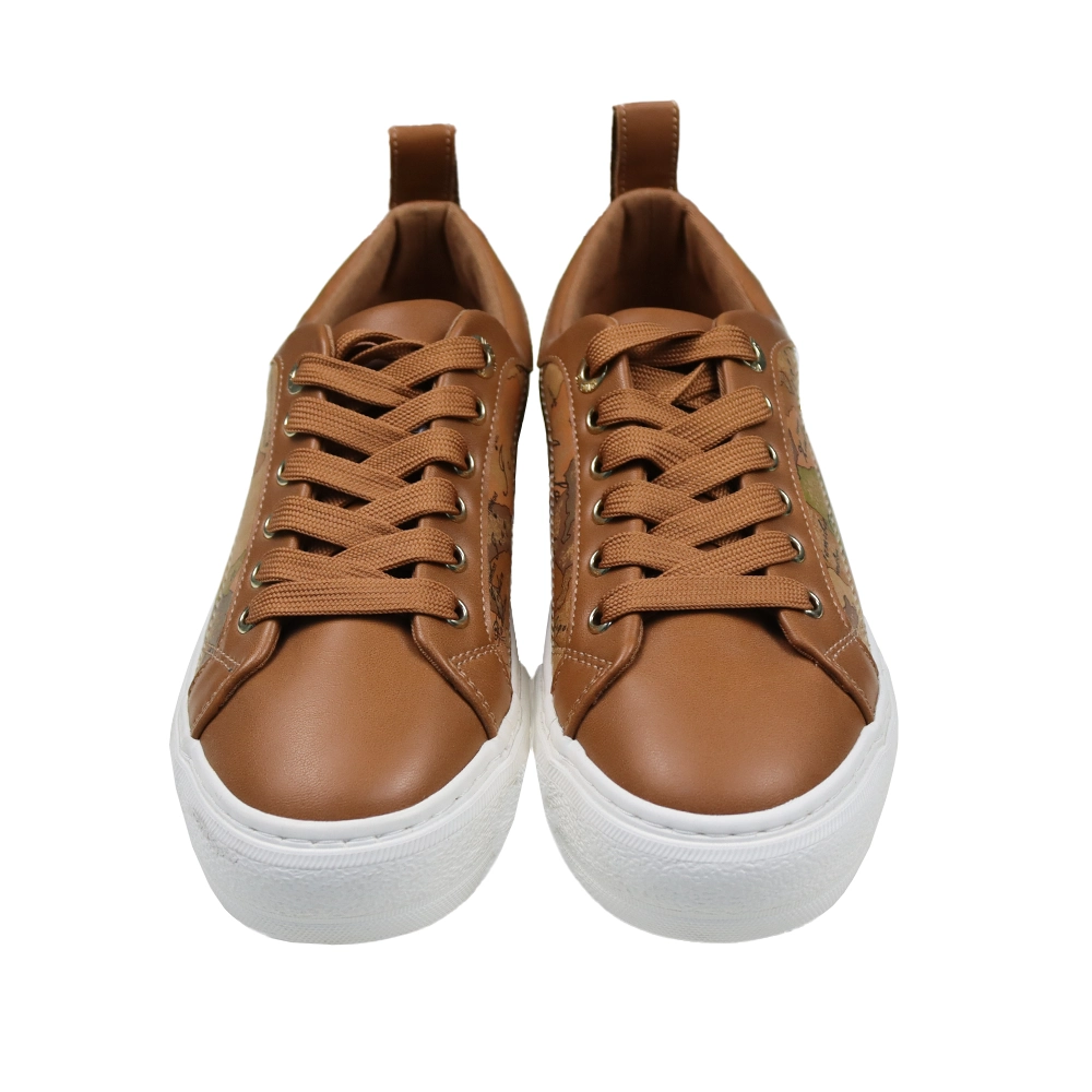 حذاء رياضي بني بطباعة خريطة جغرافية