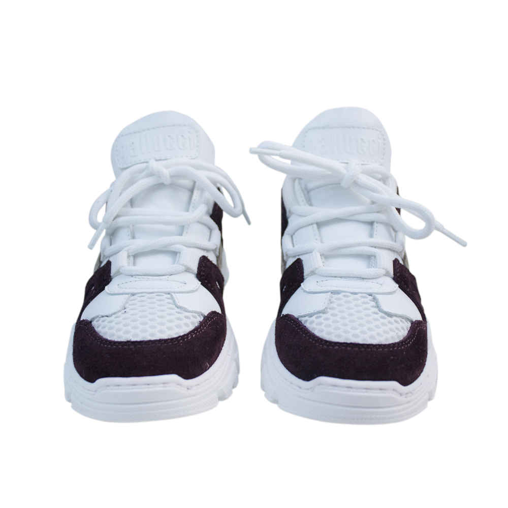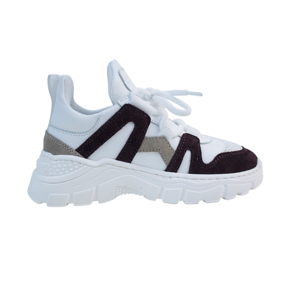 حذاء رياضي للأطفال باللونين الأبيض والبني