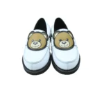حذاء لوفر جلد أبيض للأطفال مزين بدب تيدي