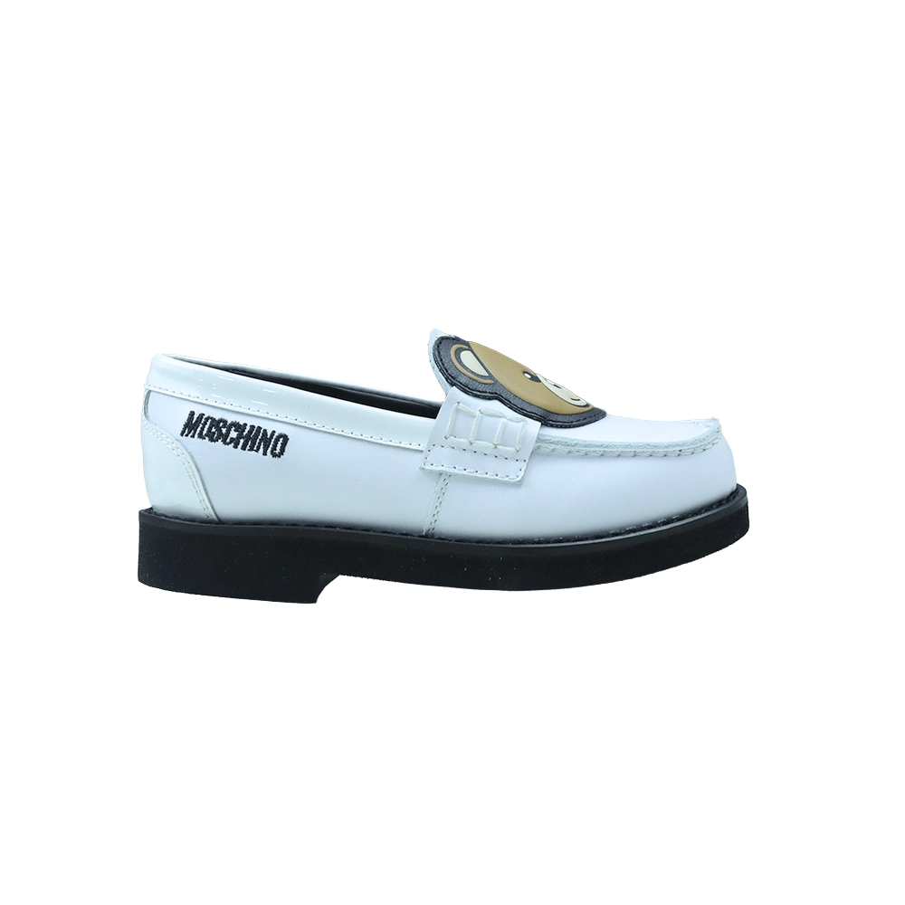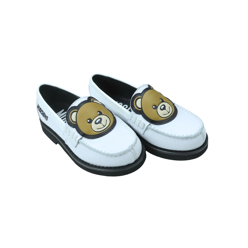حذاء لوفر جلد أبيض للأطفال مزين بدب تيدي