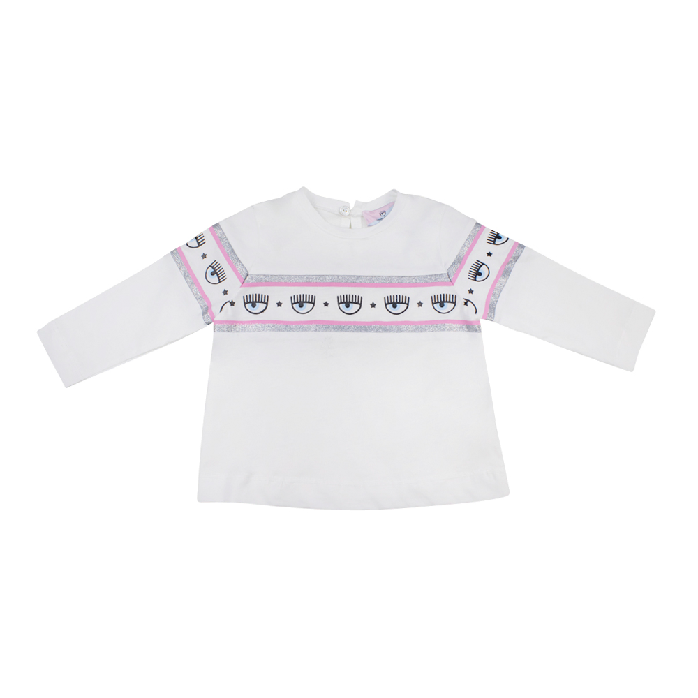 قميص أبيض بأكمام طويلة مع شعار أزرق للأولاد
