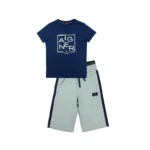 طقم تي شيرت بطباعة شعار للأولاد وشورت برباط