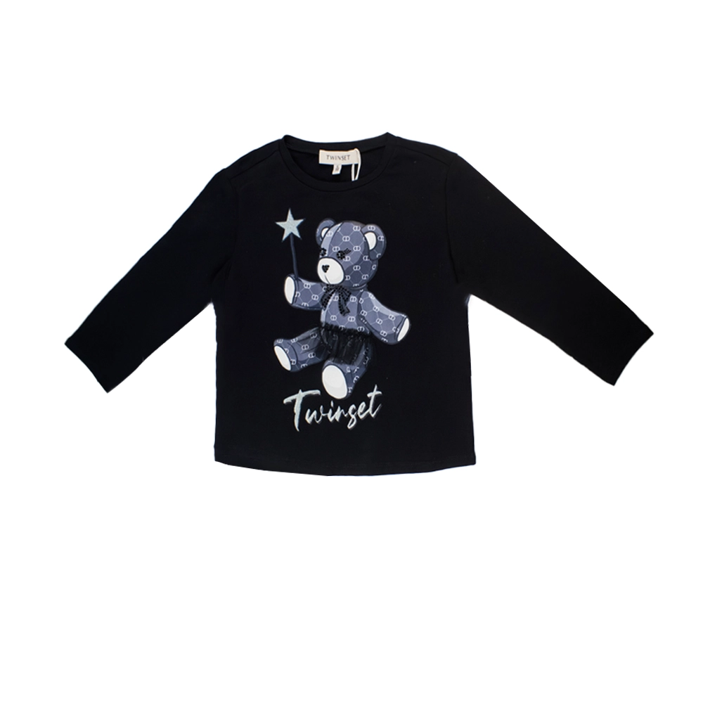 طقم تي شيرت بطبعة دبدوب وتنورة واسعة بشعار للفتيات