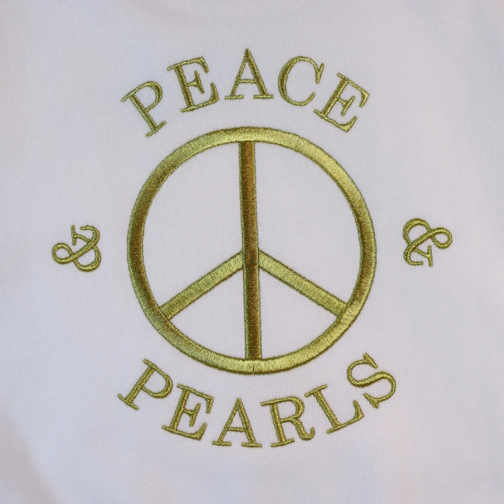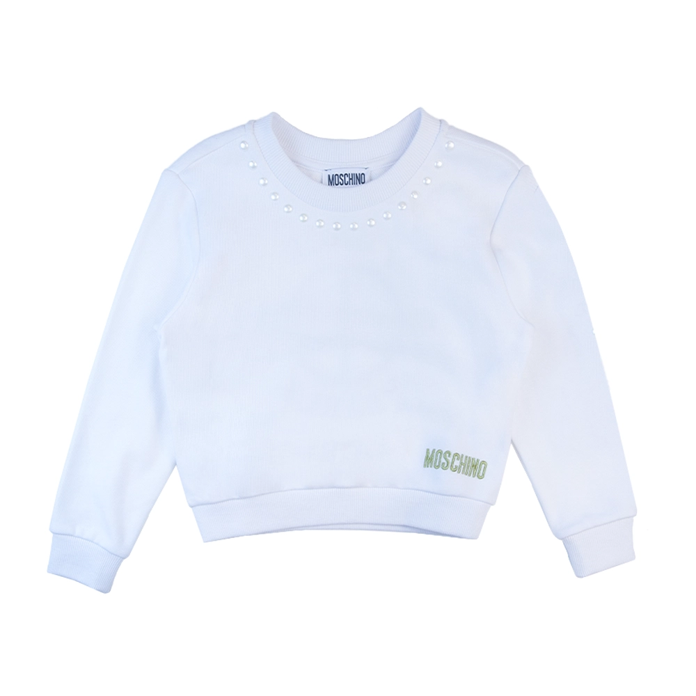 طقم رياضي أبيض مزين باللؤلؤ للفتيات