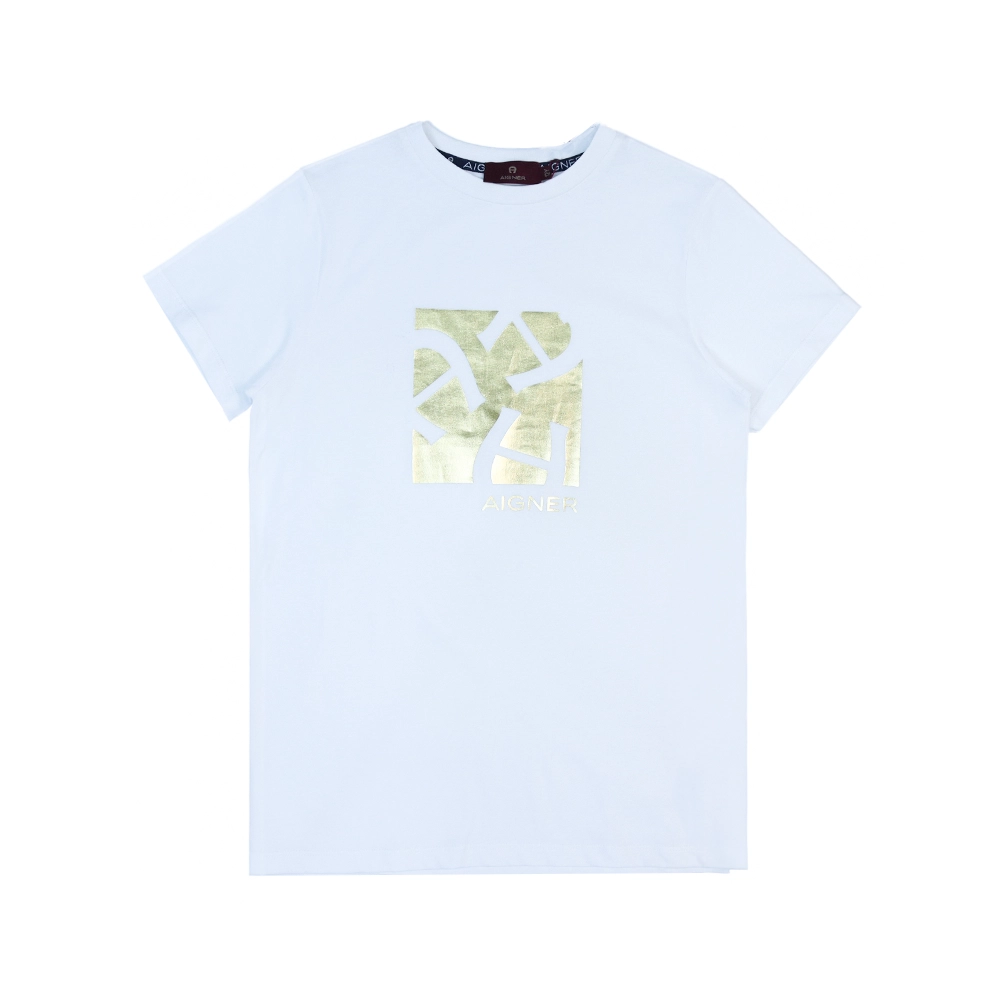 طقم قميص أبيض بشعار للأولاد وشورت كارجو أزرق