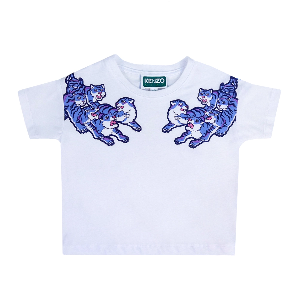 قميص أبيض بأكمام طويلة مع شعار أزرق للأولاد