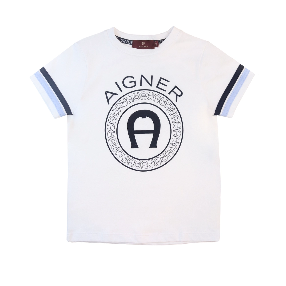 طقم قطني مكون من قطعتين للأولاد باللون الأبيض والأزرق الكحلي مع شعار