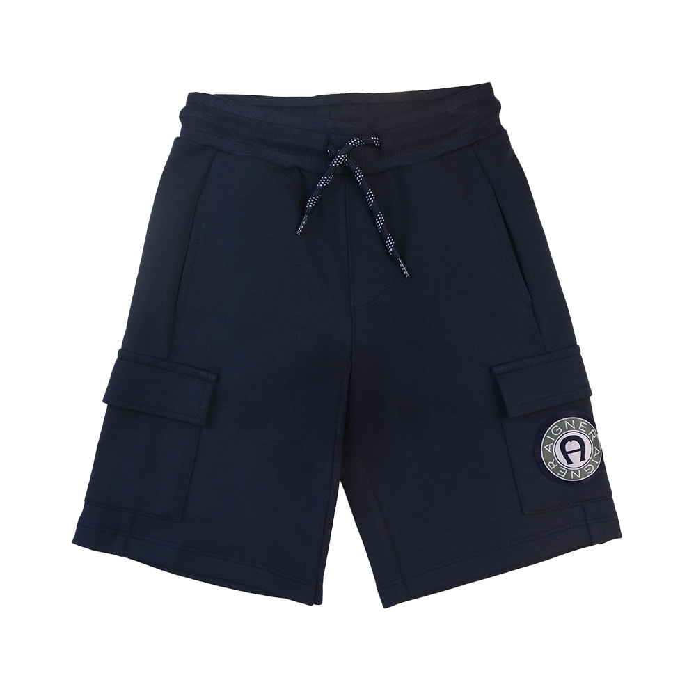 قميص بشعار أزرق للأولاد وطاقم شورت كارجو أزرق داكن