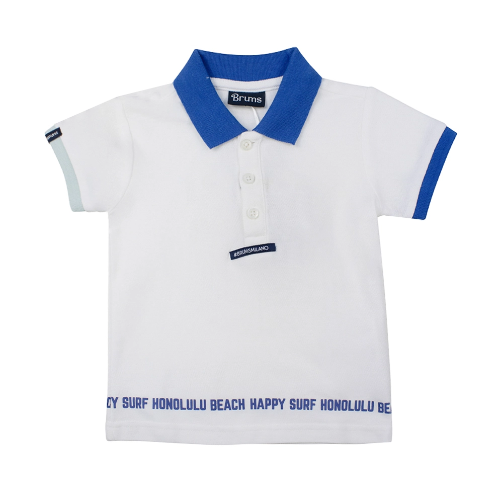 طقم قميص أبيض بشعار للأولاد وشورت كارجو أزرق