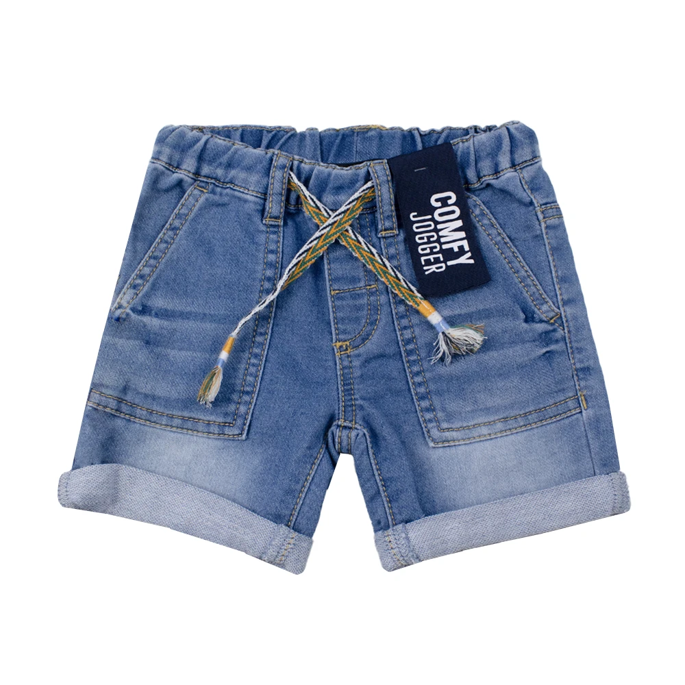 طقم قميص بولو مطبوع بشعار للأولاد وشورت جينز