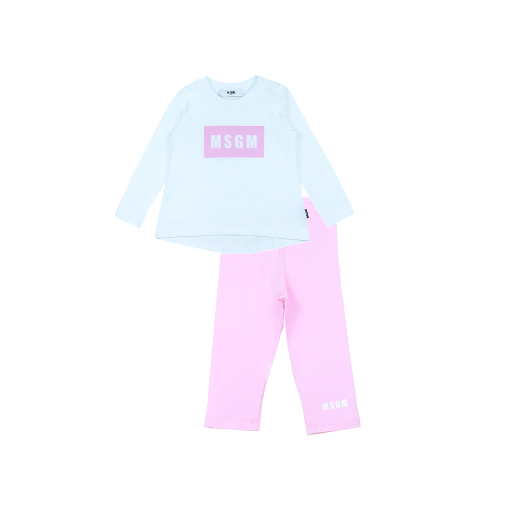 طقم قميص طويل الأكمام مع شعار للأطفال وسروال ليغينغز
