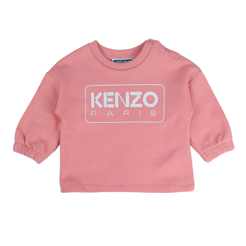 طقم كنزة وسروال رياضي للأطفال باللون الوردي مع شعار مطبوع