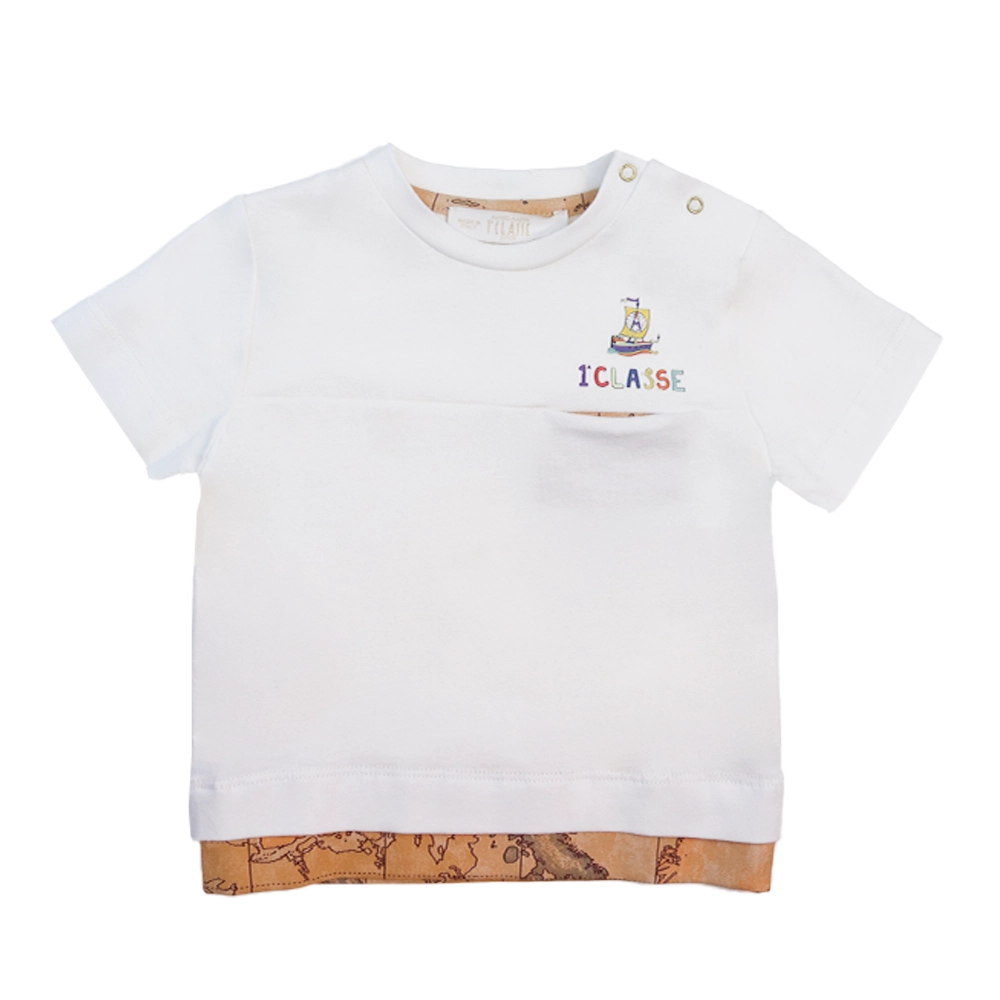 طقم من قطعتين للأولاد بطبعة الخريطة الجغرافية باللون الأبيض والأزرق الكحلي