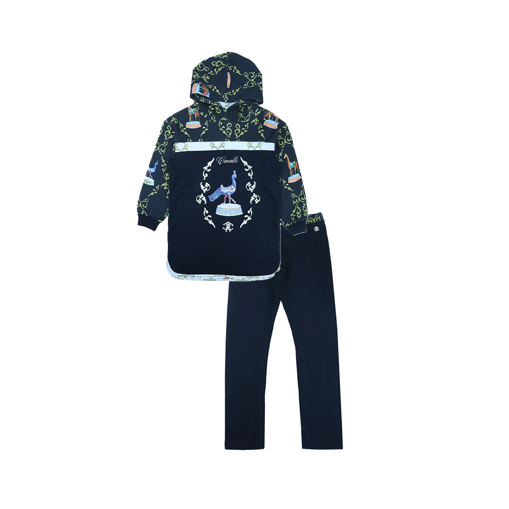 طقم هودي مطبوع باللون الأسود للأطفال ولباس داخلي