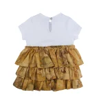 فستان أبيض بأكمام قصيرة بنقشة الخريطة الجغرافية للفتيات