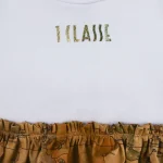 طقم بنات أبيض وبيج بطبعة خريطة جغرافية مكون من قطعتين