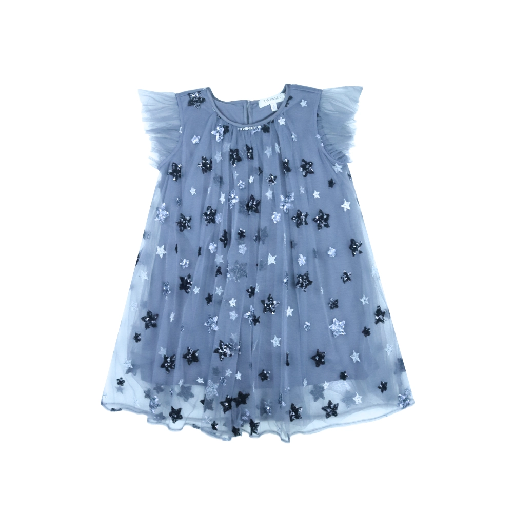 أضف لمسة من التألق إلى خزانة ملابس طفلك مع هذا الفستان الجذاب من TWINSET Kids. مصنوع من قماش التول الرمادي الناعم، يتميز الفستان بزخرفة نجمة متلألئة تضفي أناقة مرحة. مصمم بأكمام مكشكشة وياقة دائرية كلاسيكية، يوفر الراحة والأناقة، مثالي للمناسبات الخاصة أو الخروجات الاحتفالية.