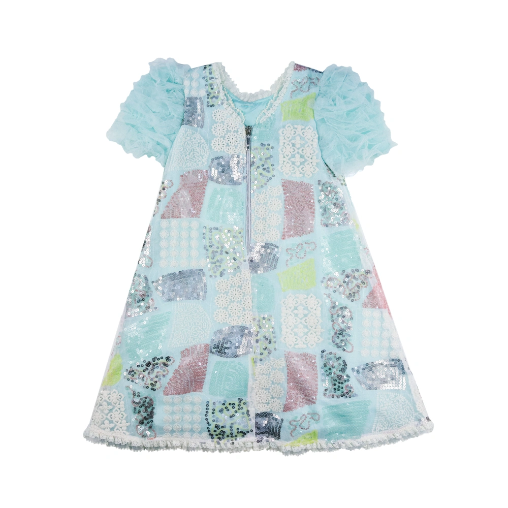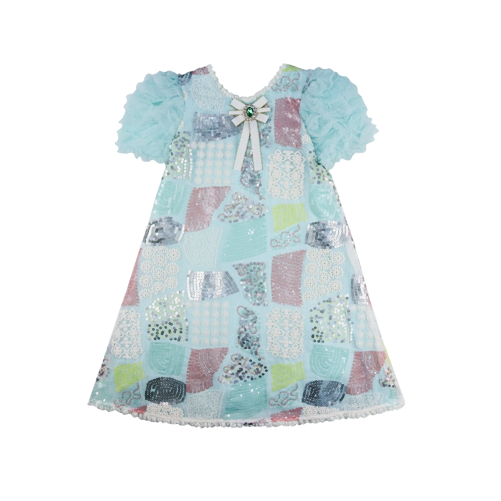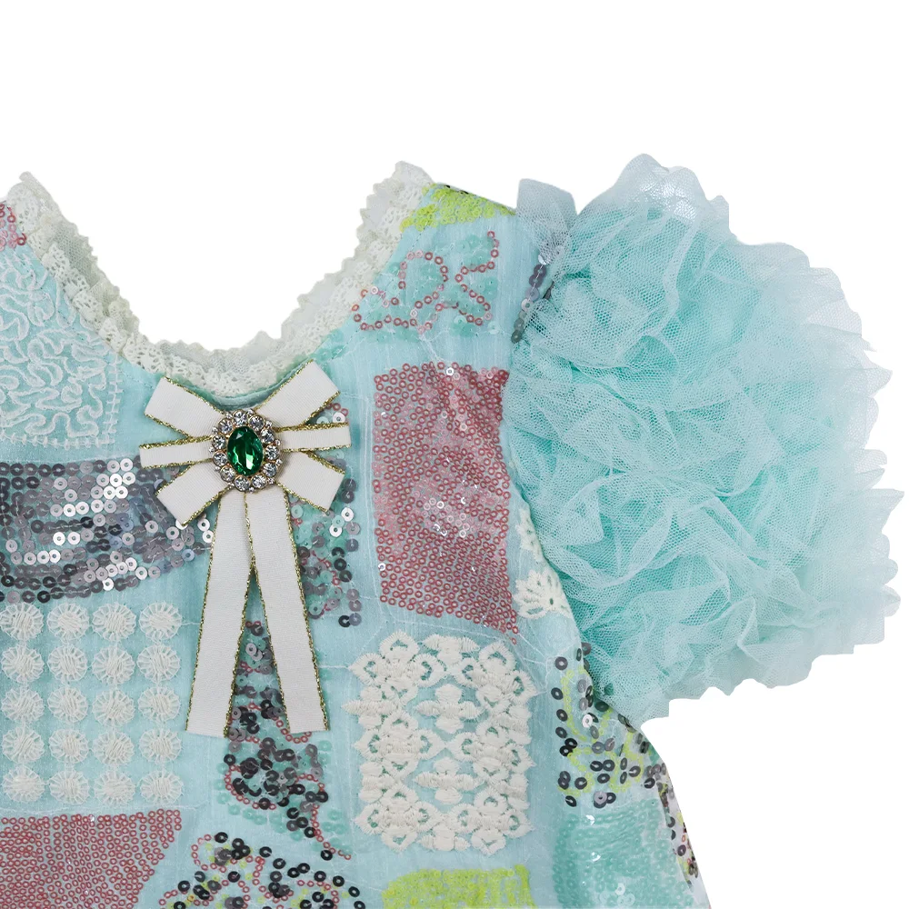 فستان حفلات للبنات باللون الأزرق الفاتح مع الترتر