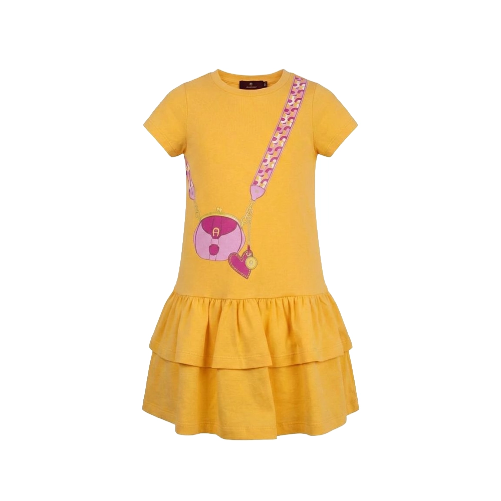 فستان قطني برتقالي للبنات مع طباعة حقيبة