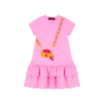فستان قطني وردي للبنات مع طباعة حقيبة