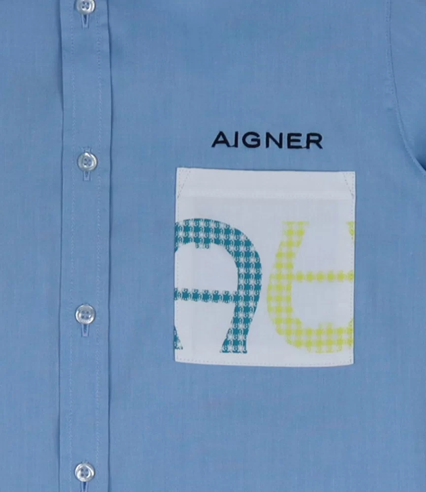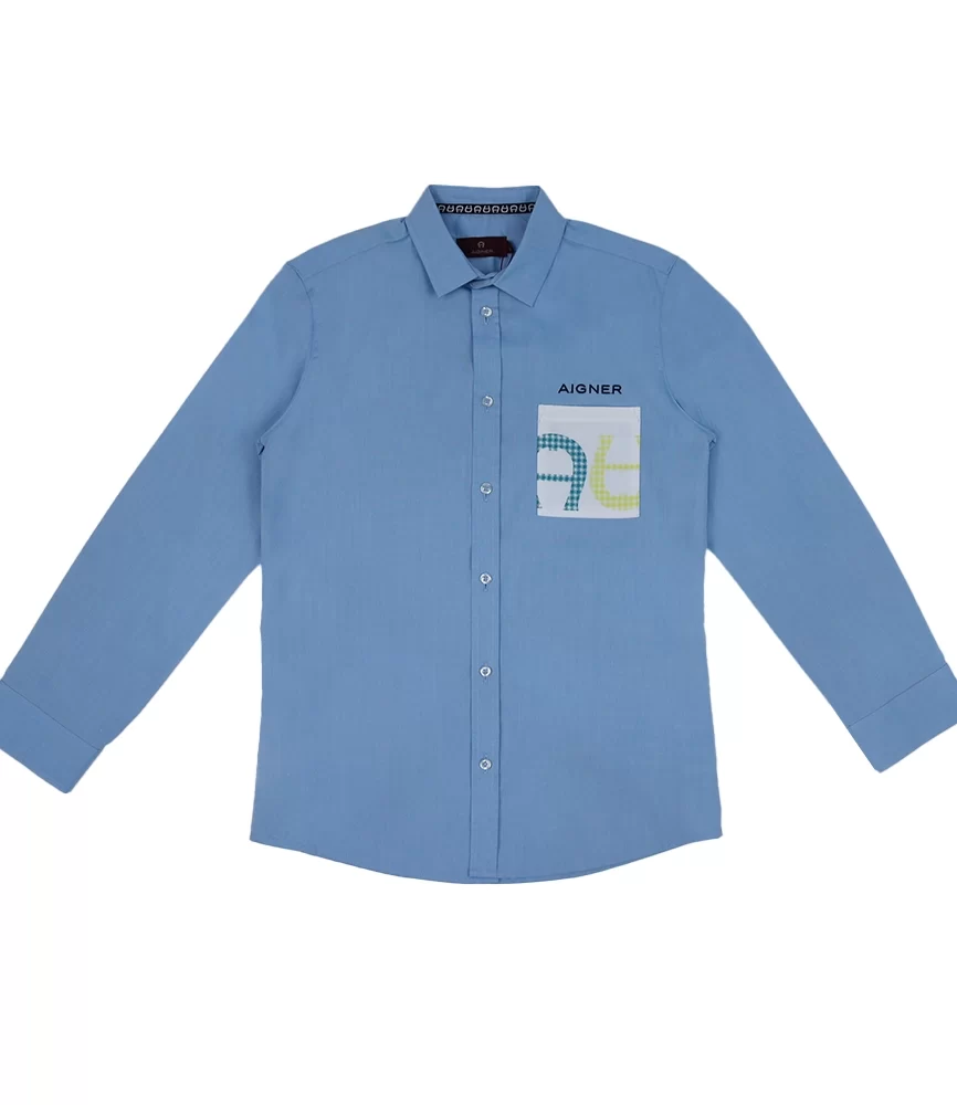 قميص أولاد من القطن بلون أزرق سماوي مع شعار