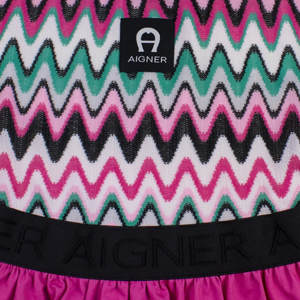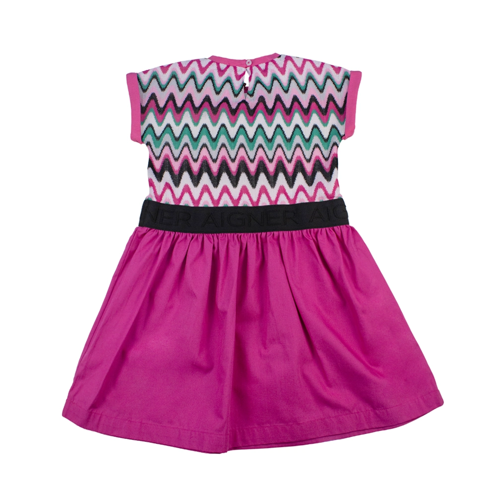 فستان وردي للفتيات بطباعة زجزاج وشعار