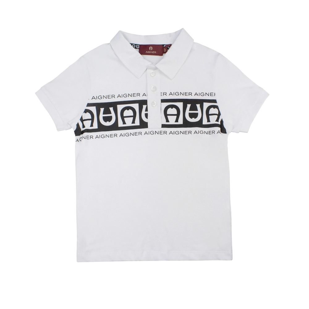 Boys White & Blue Gradient Logo Shirt