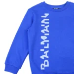 Upgrade his everyday wardrobe with this Balmain Boys Blue Logo Sweatshirt, crafted from a soft, mid-weight cotton jersey that delivers warmth, comfort, and durability. Designed with long sleeves and stretchy ribbed trims, this cosy sweatshirt is perfect for daily wear and effortless styling. Adding a modern twist to a classic silhouette, the iconic Balmain logo is embroidered along the side, creating a sleek and distinctive look that stands out. A stylish choice for boys who love designer details with a contemporary edge.
