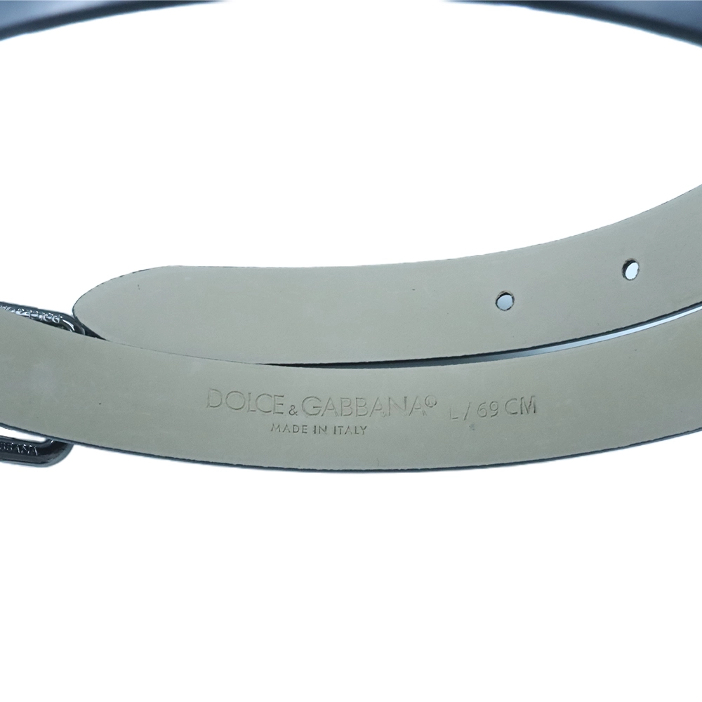 Dolce & Gabbana belt is crafted from smooth black leather for a sleek, polished look. Designed with a minimalist aesthetic, it features a structured silhouette and a classic silver-tone metal buckle that adds a sophisticated finish. Perfect for both formal and smart-casual styling, this versatile accessory complements tailored trousers, denim, or occasion wear. A wardrobe essential that reflects understated luxury and Italian craftsmanship.