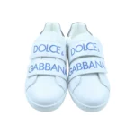 Dolce & Gabbana low-top trainers are crafted from smooth premium leather for a clean, modern look. Designed in a plain colour finish, they are elevated by the signature D&G logo printed in blue on the velcro strap, adding a playful yet distinctive touch. Featuring a classic round toe and flat silhouette, these trainers are lined in soft leather for enhanced comfort. The secure velcro fastening ensures easy wear, while the rubber cleated sole provides reliable grip and everyday durability.