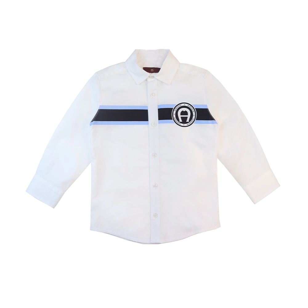 Boys White & Navy Blue Logo Cotton Shirt Set