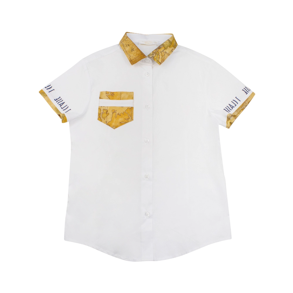 Boys White & Blue Gradient Logo Shirt