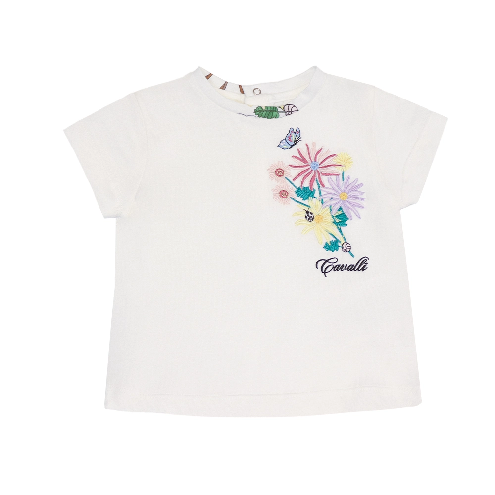 Floral-Embroidered T-Shirt & Pleated Skirt Set