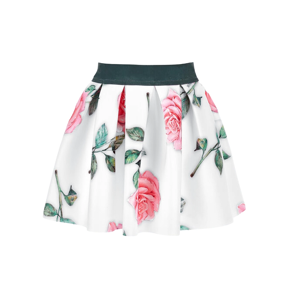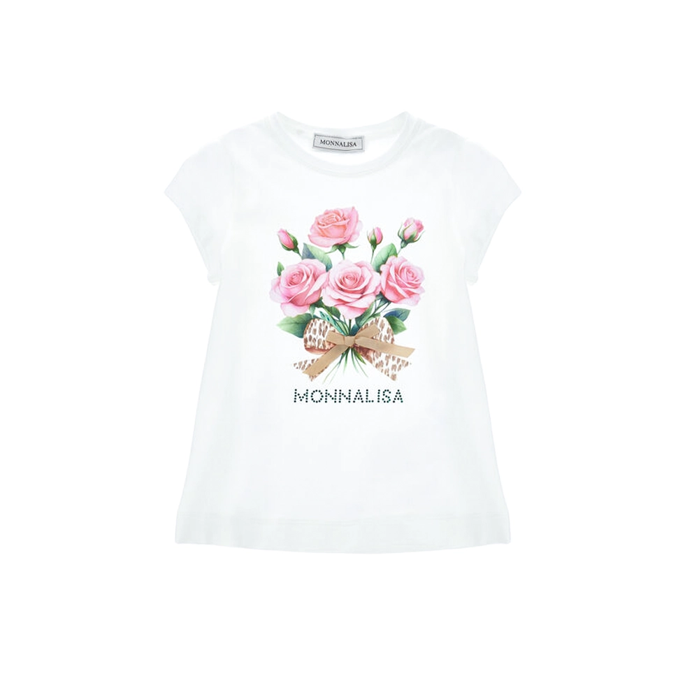 Monnalisa set is a perfect choice for special occasions. The white T-shirt features a delicate rose bouquet graphic with subtle logo detailing, designed with a classic round neckline and cap sleeves for a soft, relaxed silhouette. Paired with a beautifully coordinated skirt, the look is elevated by a charming floral print that adds a romantic touch. The elasticated waistband ensures all-day comfort while maintaining a polished fit. Ideal for parties, celebrations, or dressed-up daytime outings.