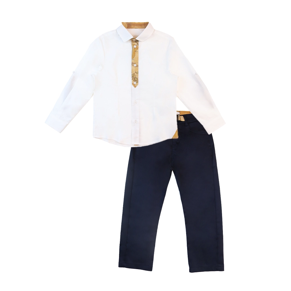 Boys Geo Map Print White & Navy Blue 2 Pcs Set