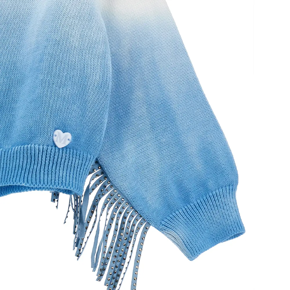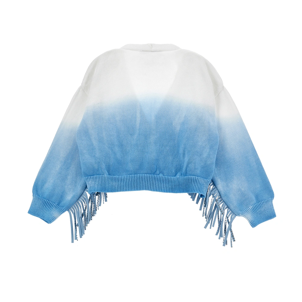Girls Blue & White Fringed Cotton Cardigan