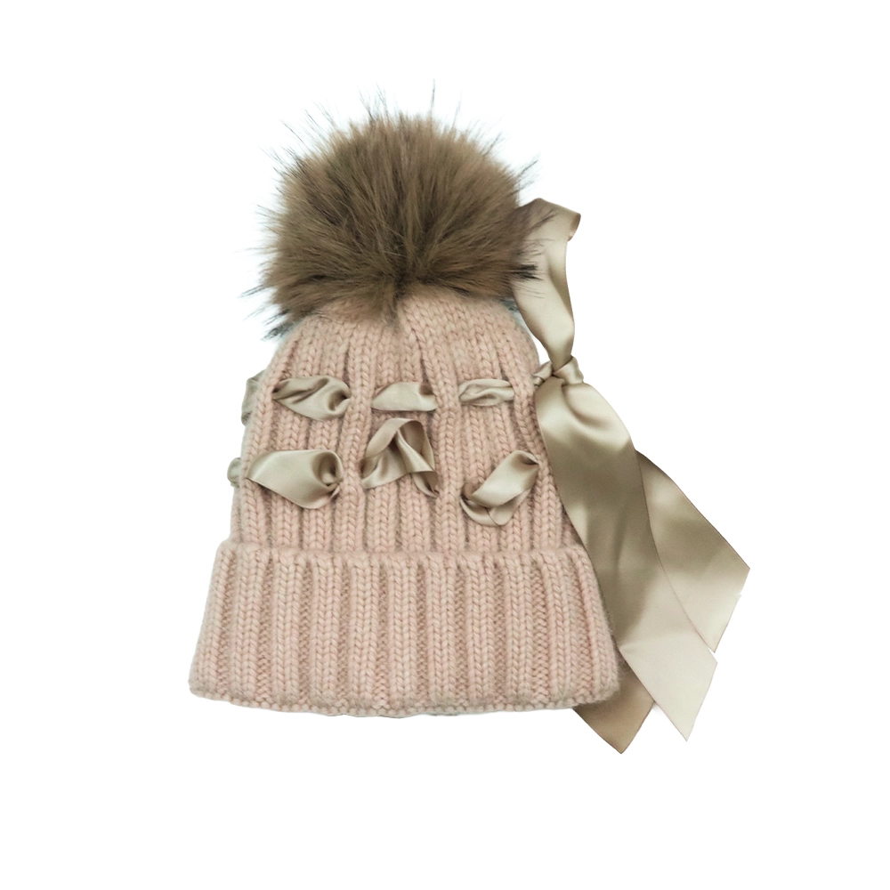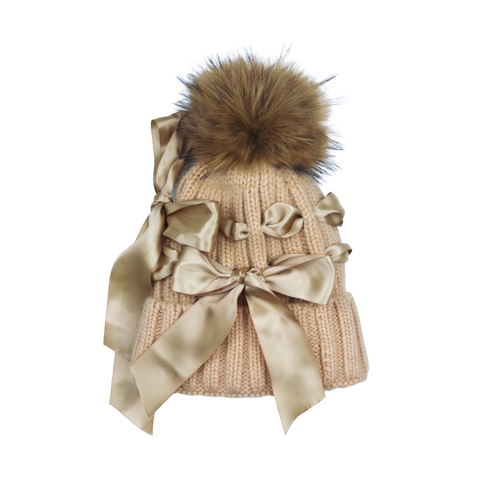 Delicate, warm, and irresistibly charming, this Monnalisa hat is a beautiful addition to any baby’s winter wardrobe. Designed with a soft mixed knit, it gently wraps the head in comfort while maintaining its shape and structure over time. The ribbed texture offers natural stretch for a snug yet comfortable fit, while the hue brings a soft, romantic touch that pairs effortlessly with coats and cozy outfits. Elegant satin bows adorn the sides, adding a playful yet refined detail. A removable, plush fur pom pom completes the look, allowing for versatile styling, keep it on for a whimsical finish or remove it for a more minimal aesthetic.
