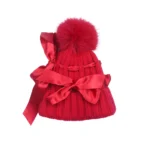 Delicate, warm, and irresistibly charming, this Monnalisa hat is a beautiful addition to any baby’s winter wardrobe. Designed with a soft mixed knit, it gently wraps the head in comfort while maintaining its shape and structure over time. The ribbed texture offers natural stretch for a snug yet comfortable fit, while the hue brings a soft, romantic touch that pairs effortlessly with coats and cozy outfits. Elegant satin bows adorn the sides, adding a playful yet refined detail. A removable, plush fur pom pom completes the look, allowing for versatile styling, keep it on for a whimsical finish or remove it for a more minimal aesthetic.