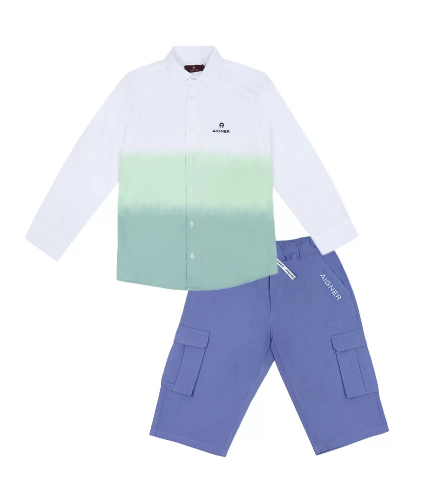 Boys Green Dip-Dye Shirt & Blue Cargo Shorts Set