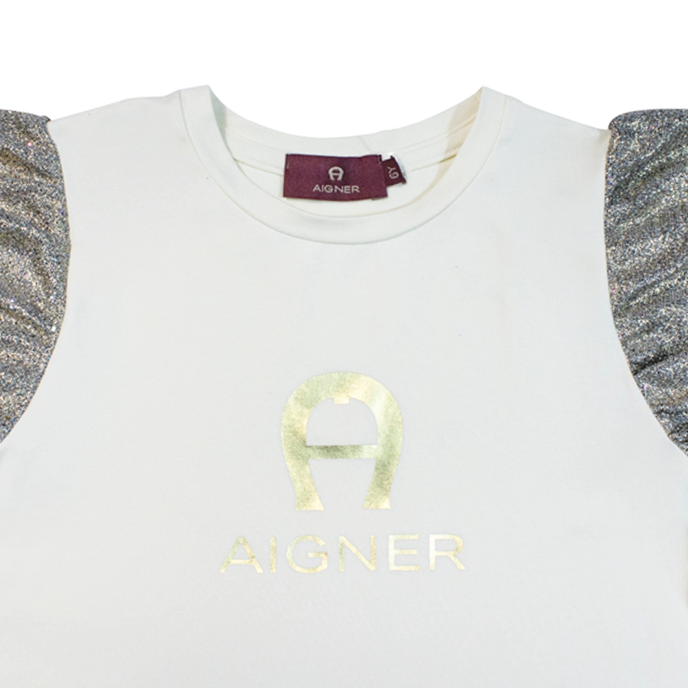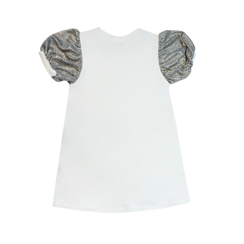 Girl’s Cream Cotton Gold Logo Dress