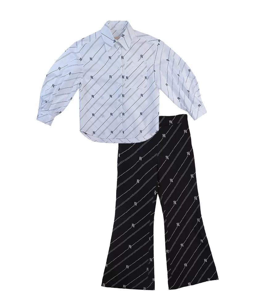 Girls Monogram-Pattern Shirt & Trouser Set