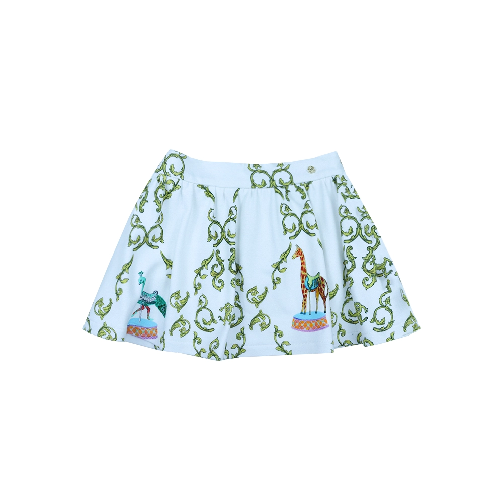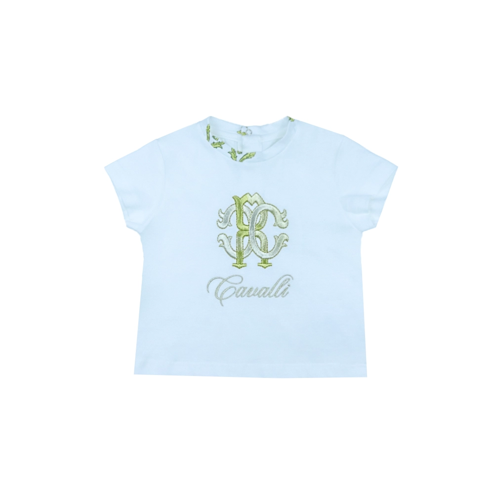 This elegant Roberto Cavalli two-piece set pairs classic simplicity with signature brand flair. The white cotton T-shirt features a refined embroidered logo, short sleeves, a round neckline, and a straight hem for a timeless silhouette. The matching skirt adds a delicate yet distinctive touch to Cavalli’s maximalist style, showcasing an intricate filigree print accented with colorful carousel animals. Finished with a concealed side zip fastening and logo hardware, the skirt offers a polished and comfortable fit. Perfect for stylish outings or special occasions, this set blends luxury, creativity, and effortless charm.