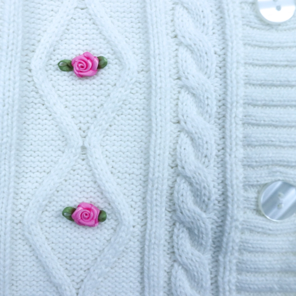 Girls Embroidered Rose Knit Cardigan